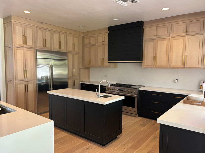 We work in about a 100 mile radius of Sacramento, including Santa Rosa, Concord, Marysville, Truckee, El Dorado Hills, and most points in between. We build all types of cabinets including standard overlay face frame, tight margin face frame, flush inset face frame, and European frameless. We build both wood cabinets that are either stained or painted, in a conversion varnish finish, and laminate cabinets. We have completed projects from five thousand to over one million dollars.